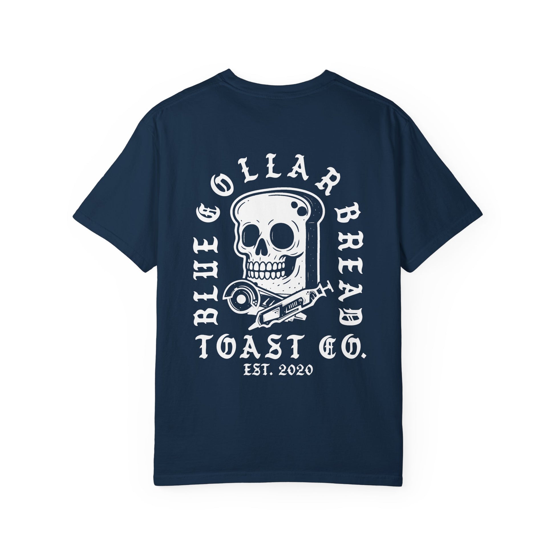 Blue Collar Bread Tshirt on a Comfort Colors blank. I love this brand the best for its overall fit and quality. Very comfy and true to size. Gets better with every wash.