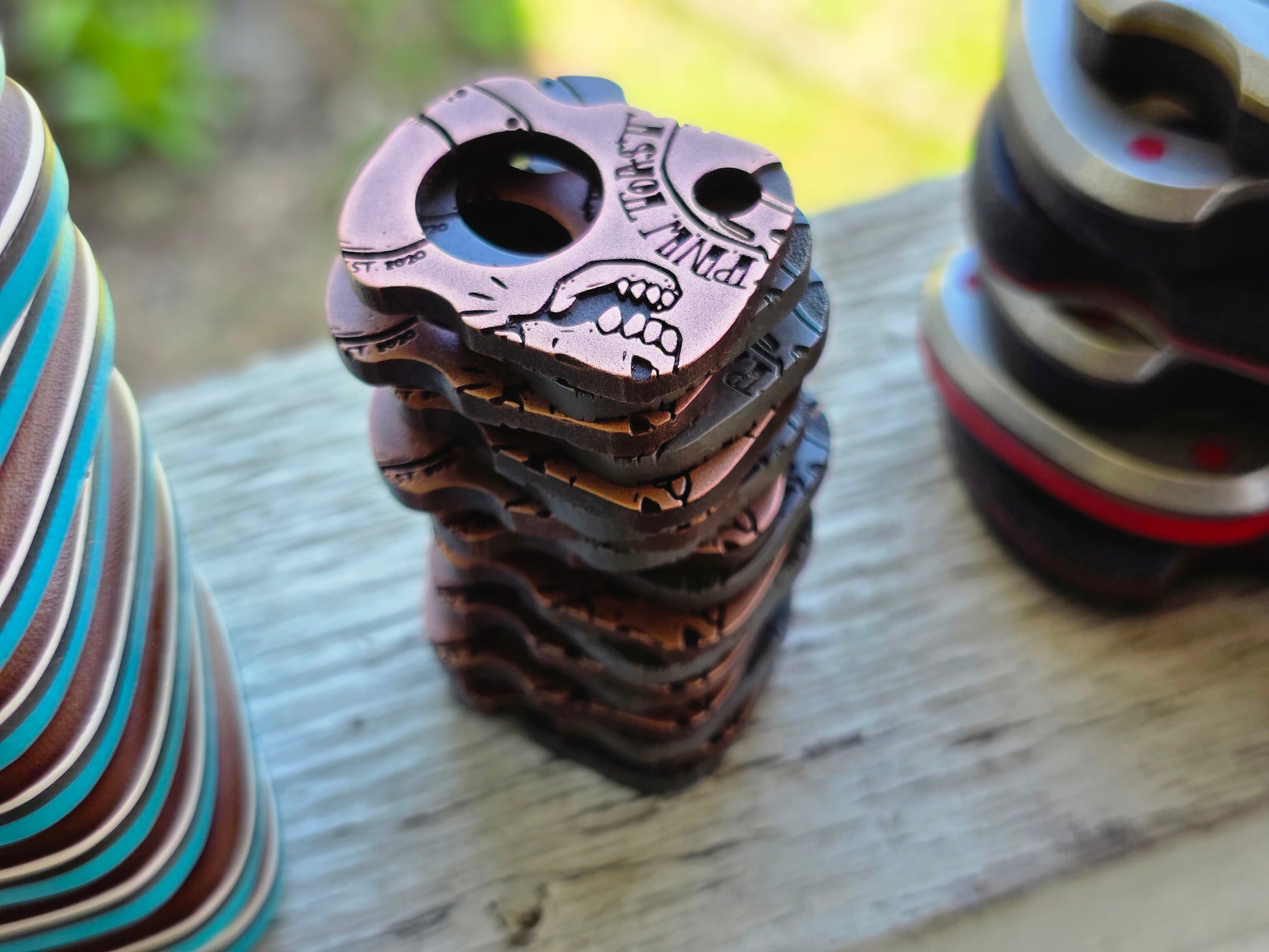 These are 1 x 1.25" and 1/8 thick. Just some little crumbs you can wear, put on your keys, or whatever. We dont judge.