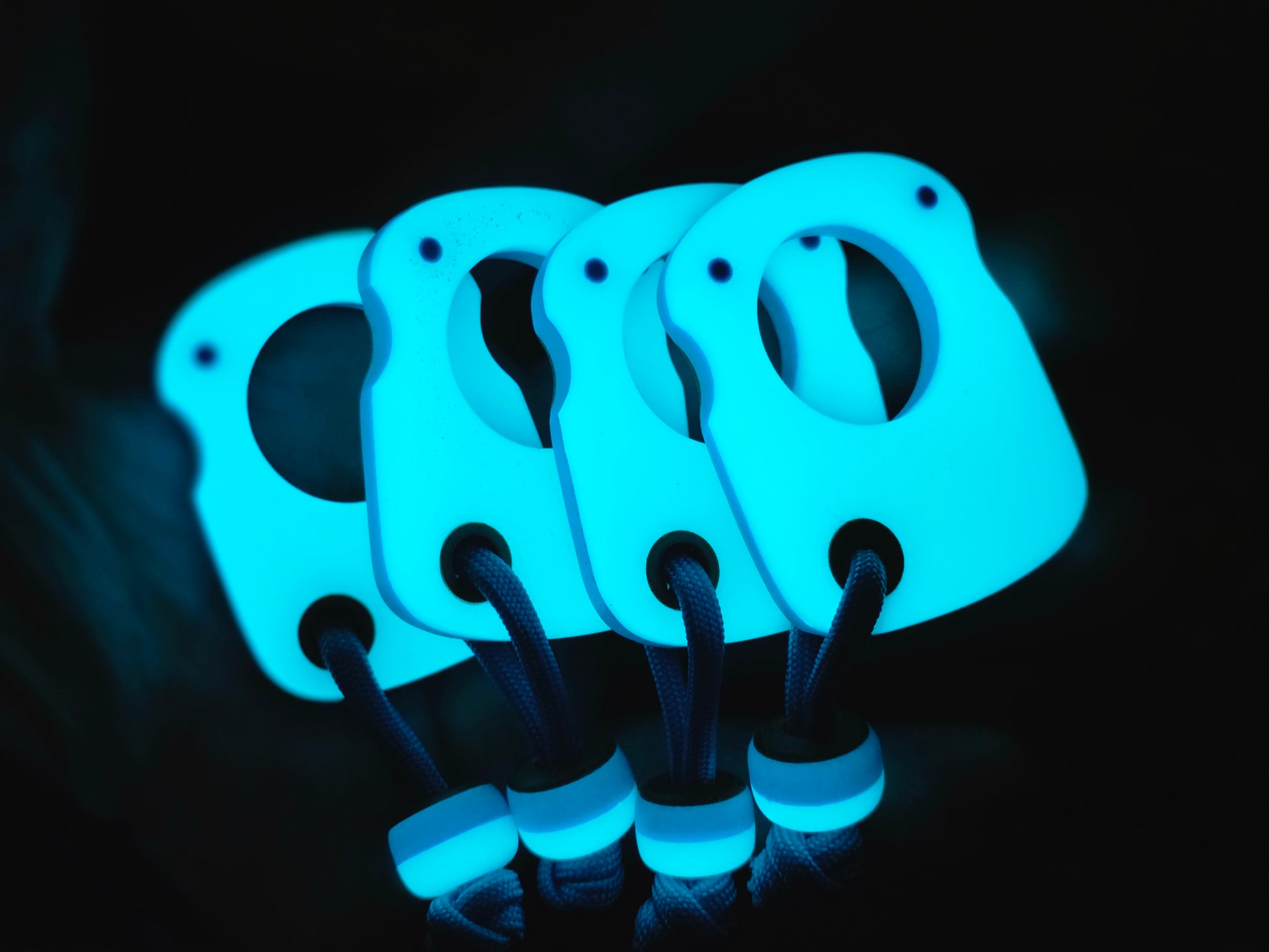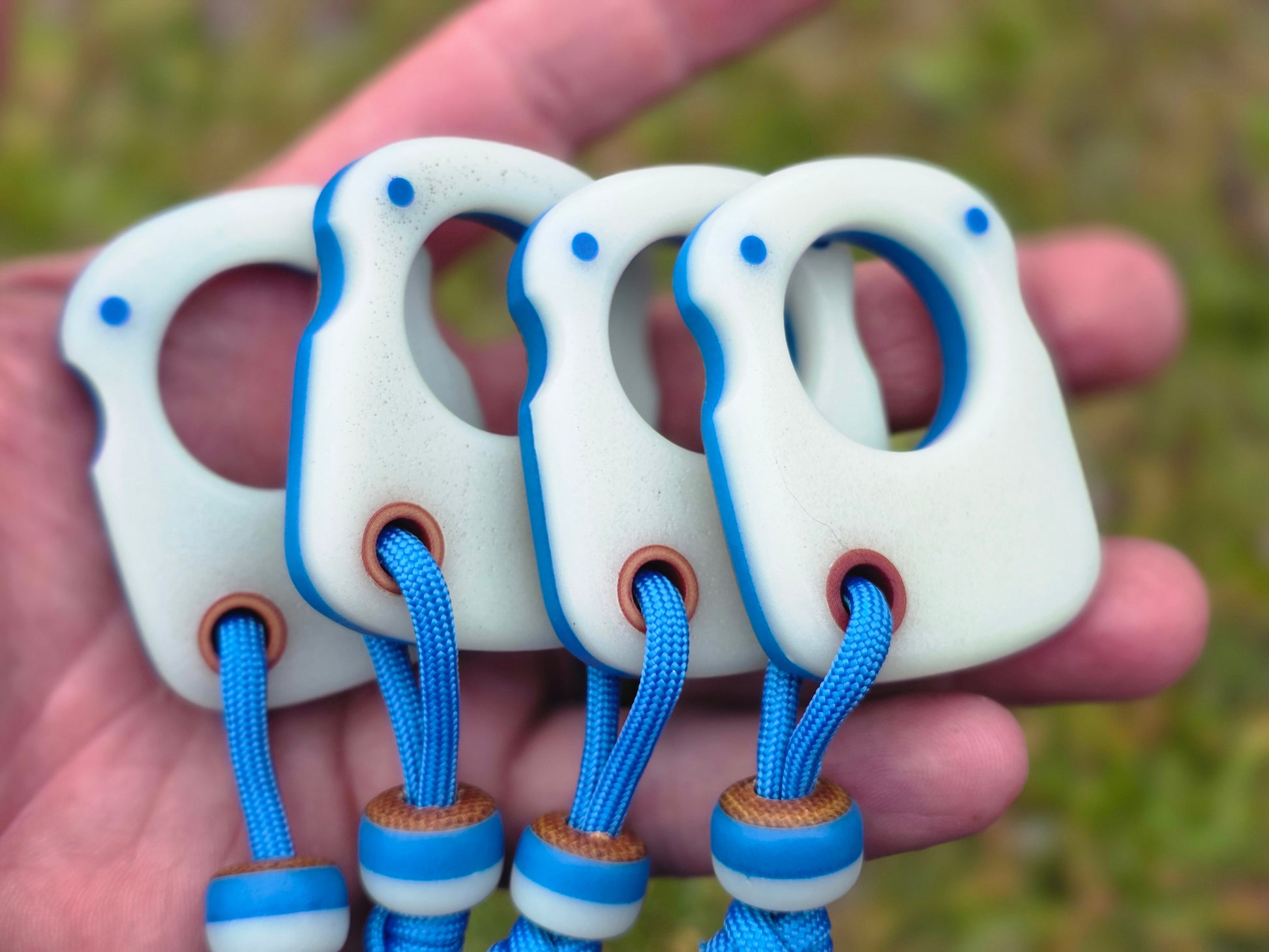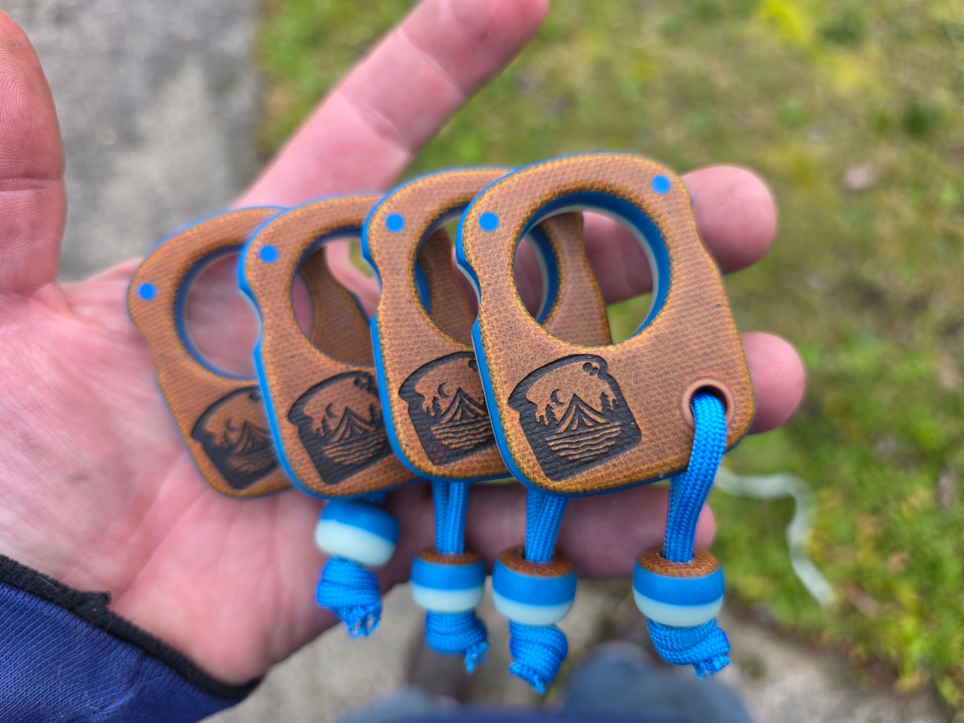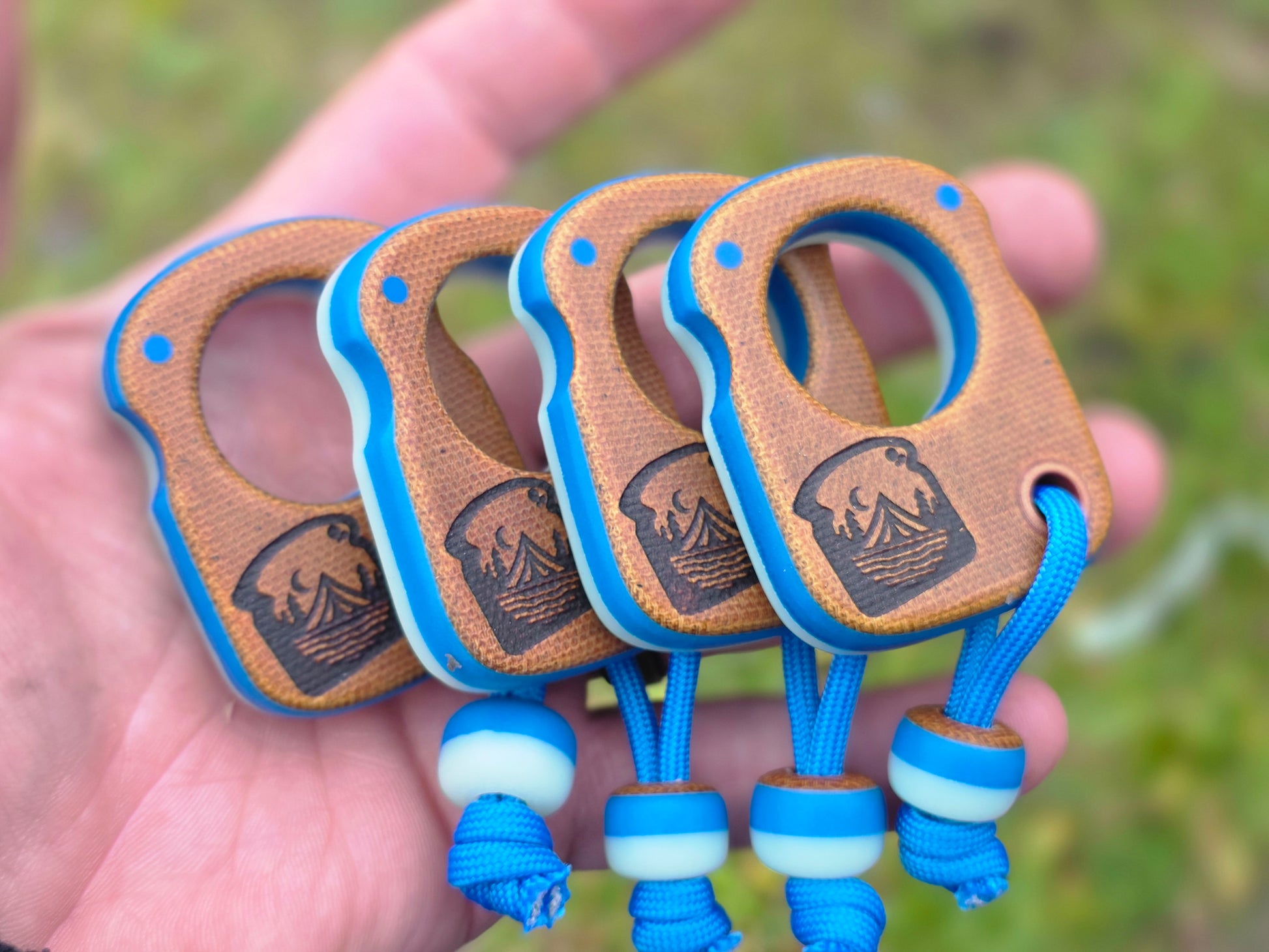 Made with natural canvas, and homemade blue/aqua glow with blue g10 pins.